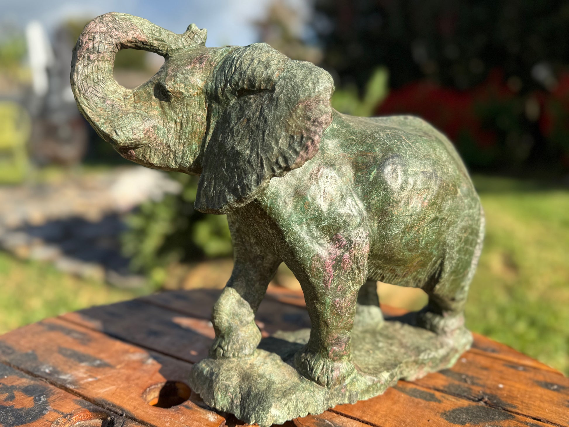 Majestic and grounding, Elephant is a beautifully hand-carved piece crafted from soft green Opal Stone. Measuring 30cm high and 35cm long, and weighing 12.3kg, this sculpture honours strength, memory, and gentle power—making it a meaningful centrepiece for any indoor space that celebrates nature and wisdom.