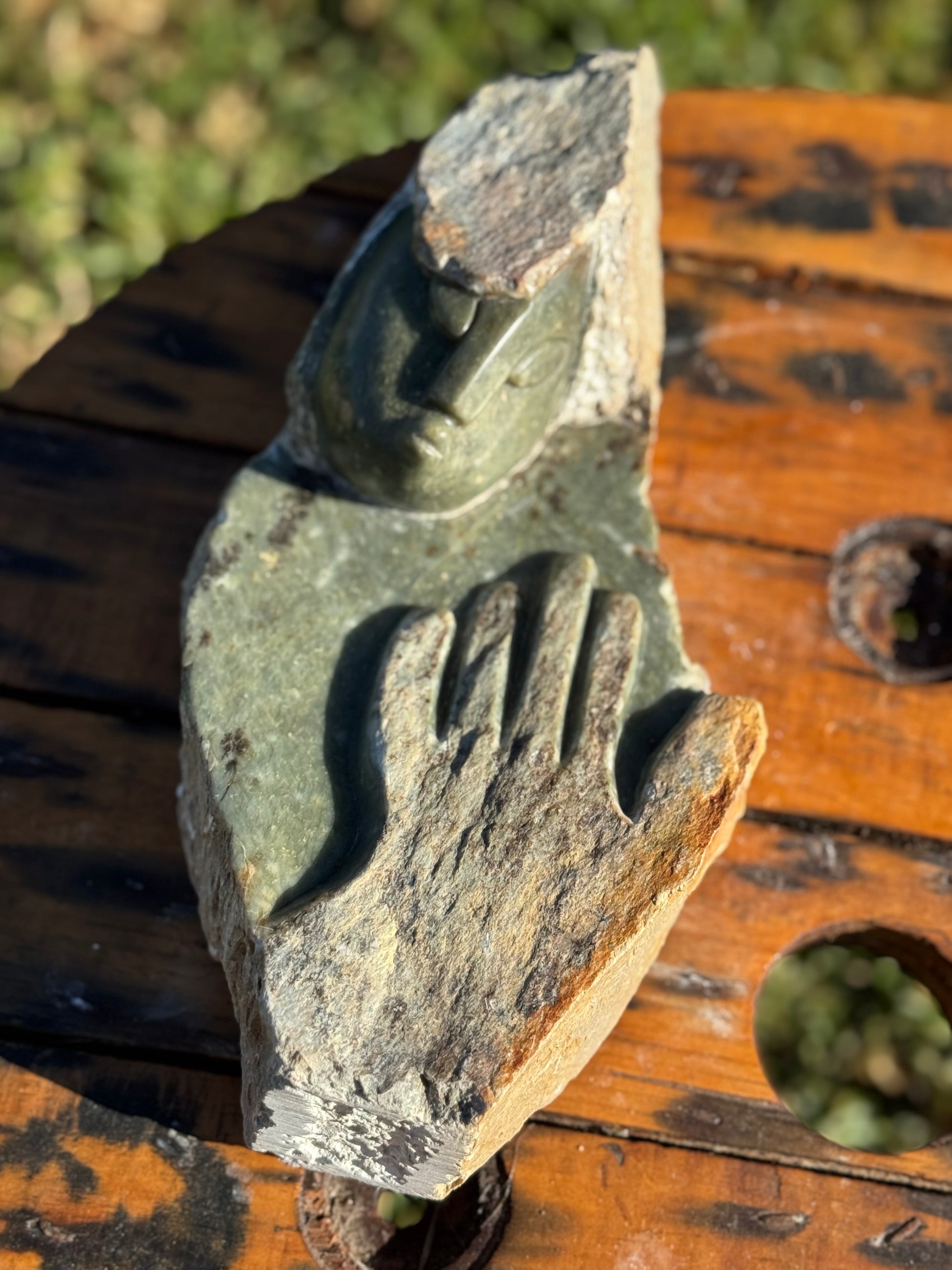 Tender and evocative, Heartfelt Promises by Ottis Karimanzira captures a quiet moment of love, trust, or commitment. Carved from gentle green Opal Stone and measuring 30cm in length, this 4.4kg sculpture is best displayed indoors. Radiating warmth, emotional connection, and the beauty of unspoken vows from within your home.