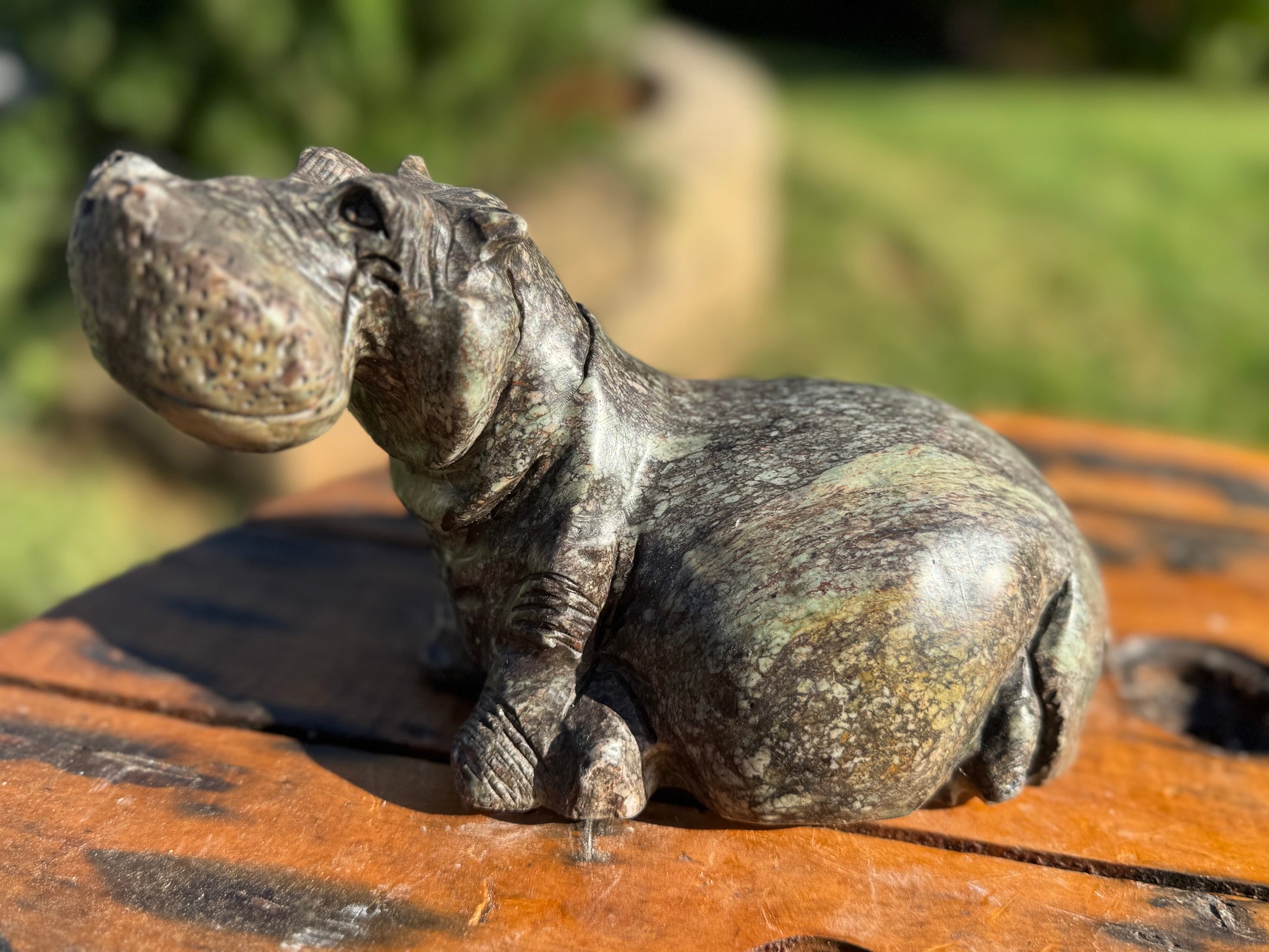 Charming and quietly powerful, Hippo by Godfrey Chisahwira is a beautifully hand-carved piece in deep blue Cobalt stone. Measuring 13cm high and 20cm long, and weighing 2.3kg, this compact sculpture is ideal for indoor display—bringing a sense of calm strength and playful spirit to any space.
