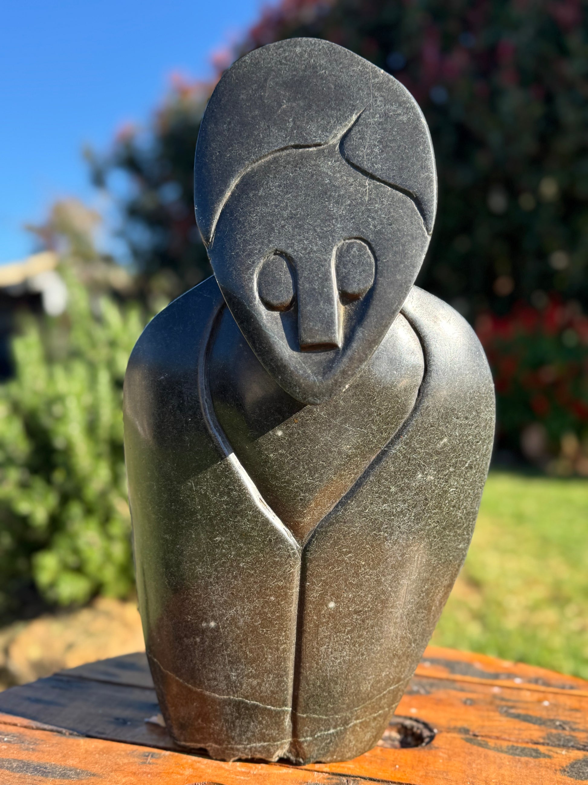 Calm, steady, and wise, Observer is a striking sculpture carved from bold, dark Springstone. Standing 44cm high and weighing 17.3kg, this powerful piece invites quiet contemplation and grounded presence—perfect for any space seeking stillness, focus, and a strong, watchful energy rooted in nature and tradition.