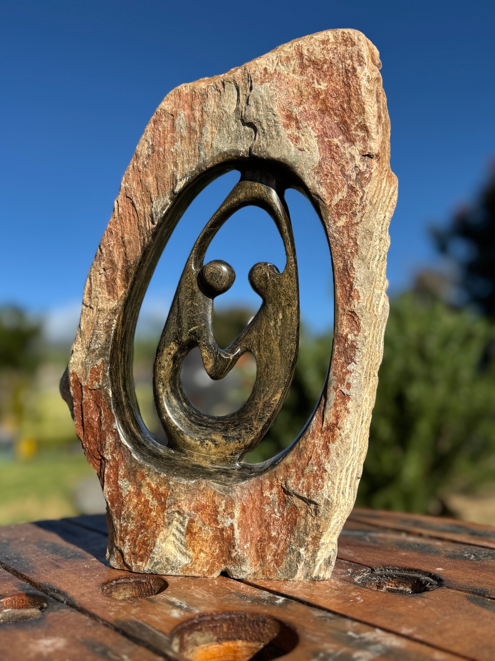 Alive with rhythm and energy, Spirit Dancers is a vibrant sculpture carved from smooth Soapstone. Standing 35cm tall and weighing 3.9kg, this dynamic piece celebrates movement, ritual, and joy—an uplifting tribute to the soulful connection between body, spirit, and ancestral tradition.