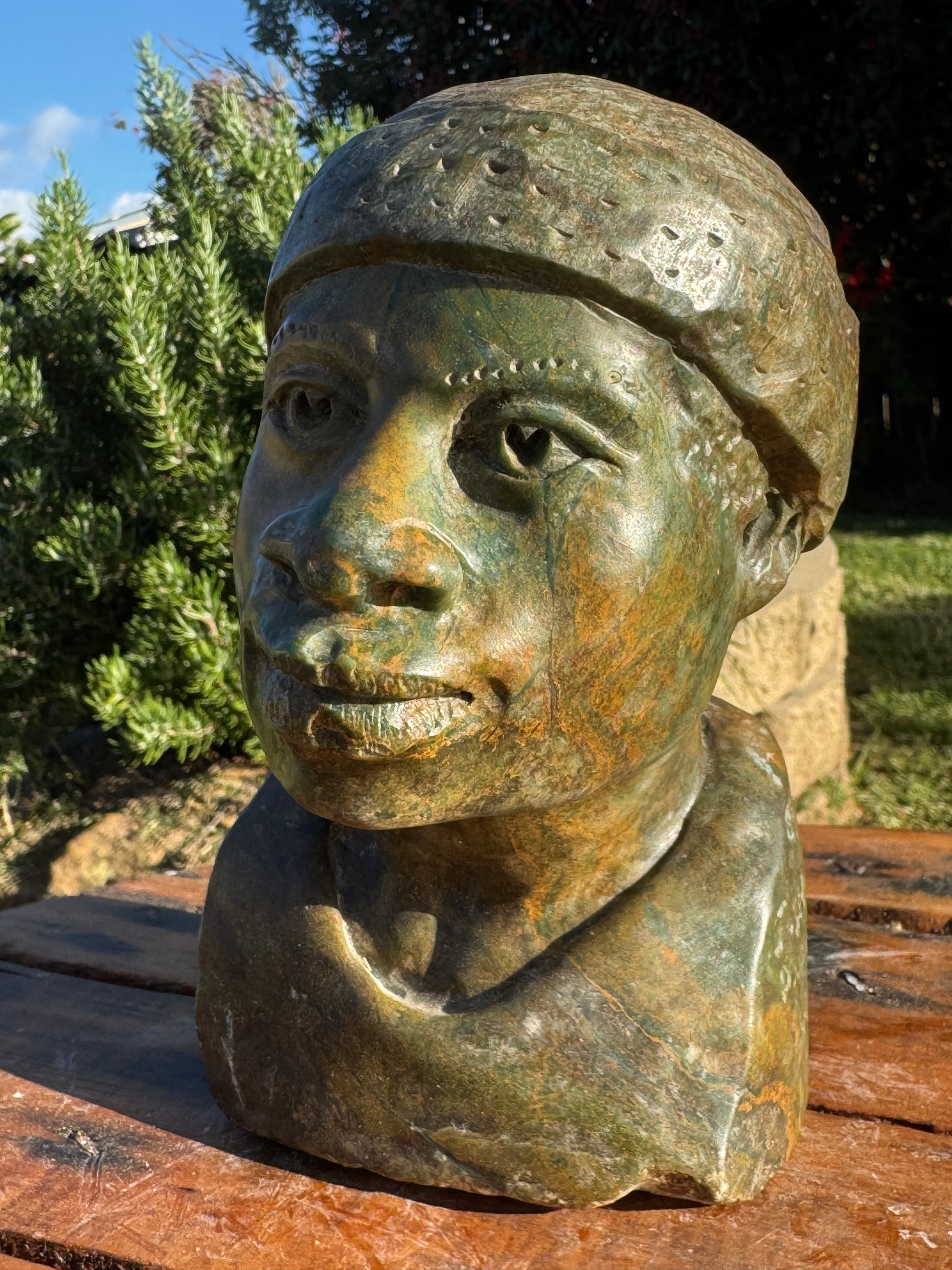 Rich with cultural depth and quiet strength, Tribal Member is a finely detailed piece carved from vibrant green Verdite. Weighing 2.8kg and standing 17cm tall, this sculpture honours ancestral identity and heritage—bringing a grounded, dignified presence to any space.