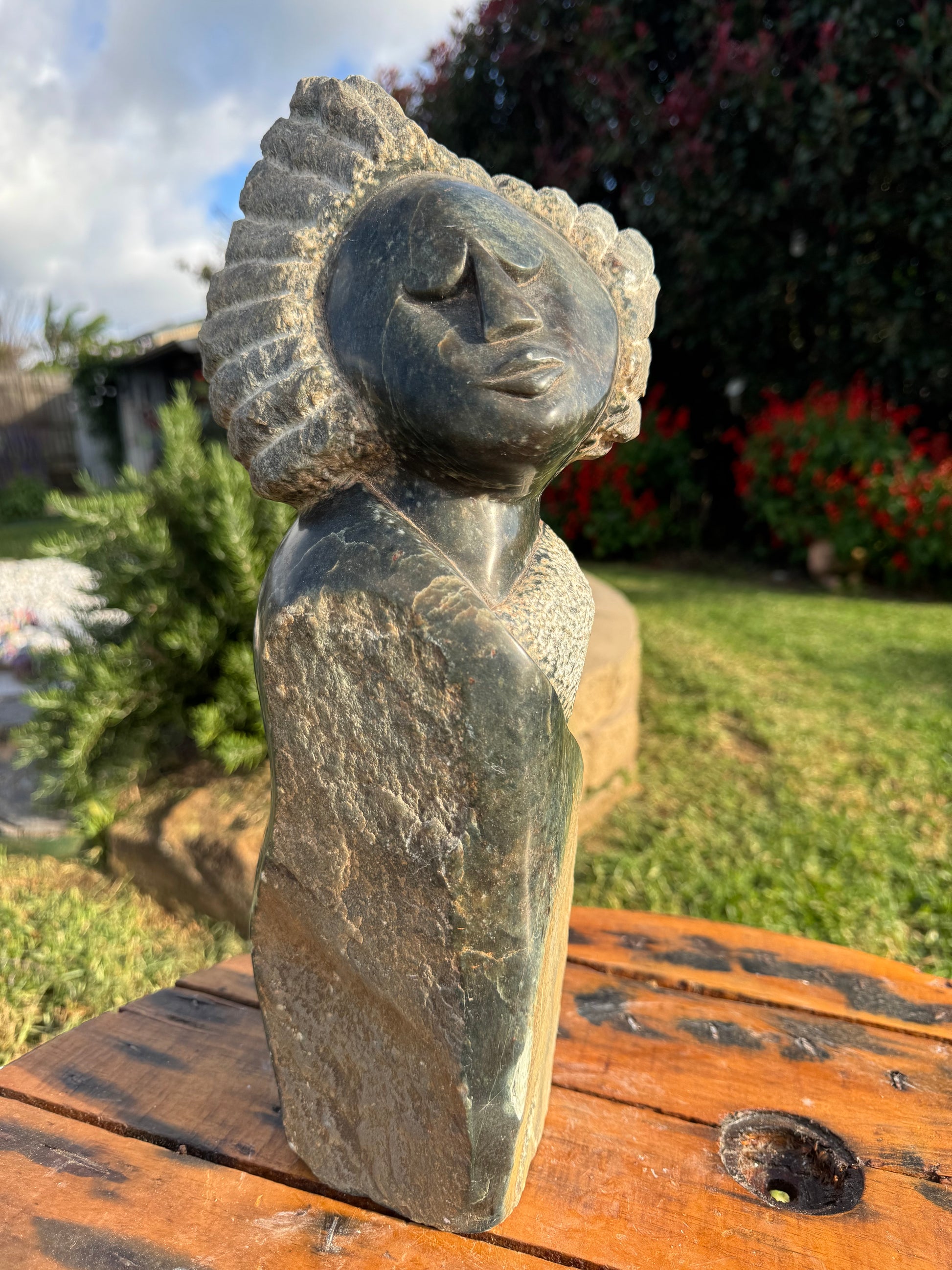 Graceful and full of quiet anticipation, Waiting Mother is a beautifully carved Serpentine sculpture that captures the strength and stillness of motherhood. Weighing 7kg and standing 37cm tall, this piece radiates nurturing energy, patience, and love— no matter where you are on your journey. Whether it involves loss, love or those children that are yet to come into our arms; It's a meaningful addition to any heart-centred or family-focused space.