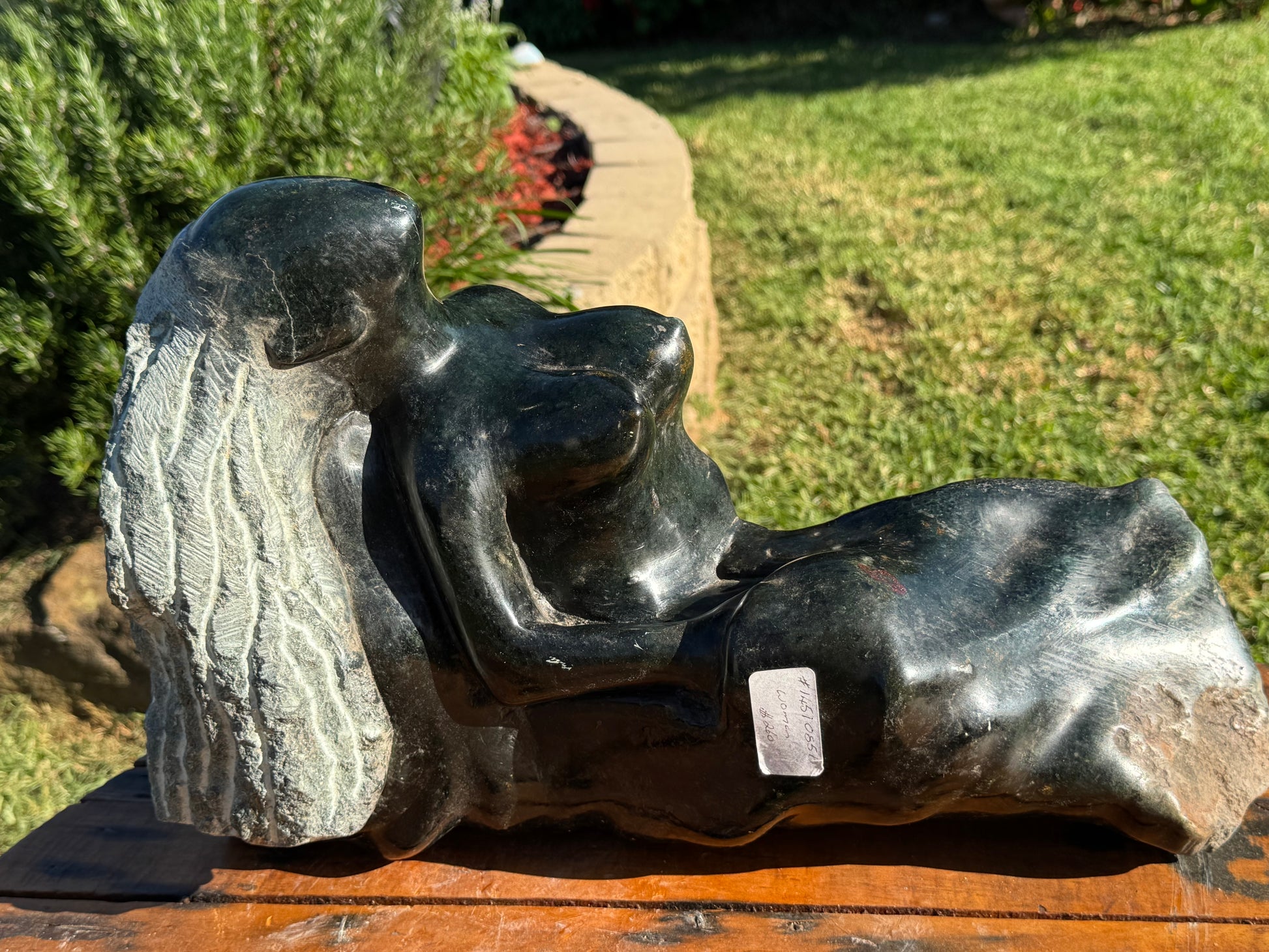 Graceful and grounded, Woman is a powerful celebration of feminine strength and quiet resilience. Expertly carved from rich Serpentine stone, this 12.6kg sculpture measures 23cm high and 38cm long. Suitable for outdoor display, it brings earthy beauty and timeless presence to your garden or sacred outdoor space.